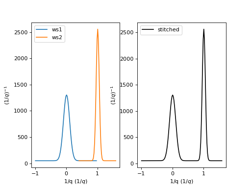 stitched, scale = Stitch1D(LHSWorkspace=ws1, RHSWorkspace=ws2, StartOverlap=0.4, EndOverlap=0.6, Params=0.02)