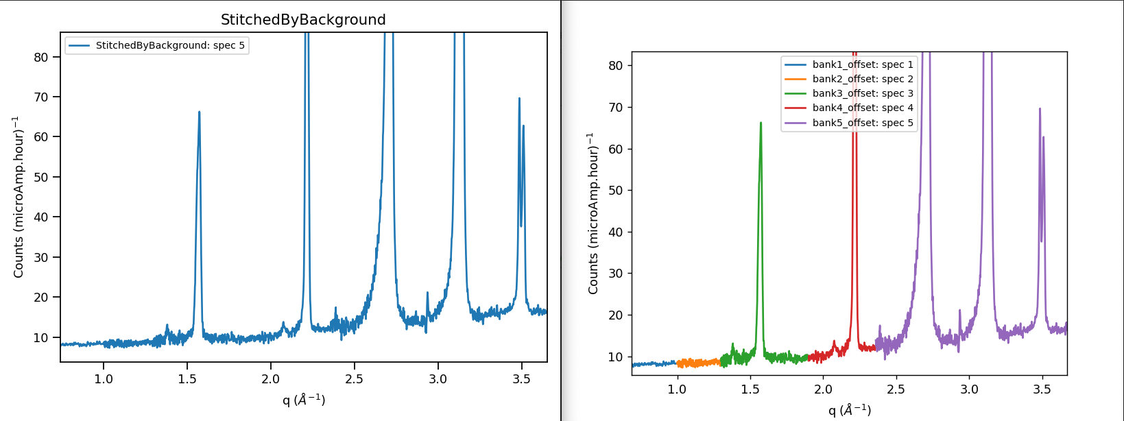 StitchByBackground(InputWorkspaces=ws_list, StitchPoints=stitch_points, OutputWorkspace="out", OverlapWidth=2000, CropUpperBound=95000, CropLowerBound=0)
