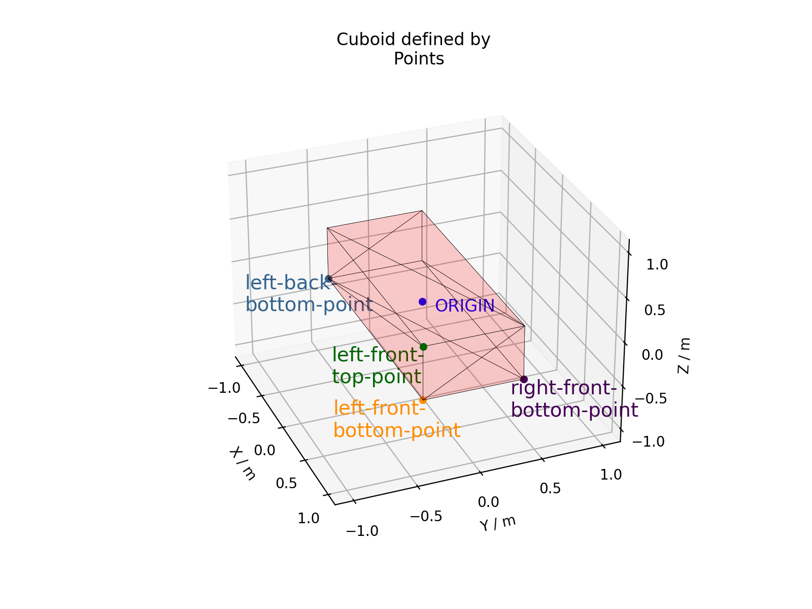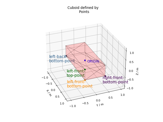 In the next example, four points are used to describe a 2m x 0.8m x 0.4m cuboid with the its centre at the origin.