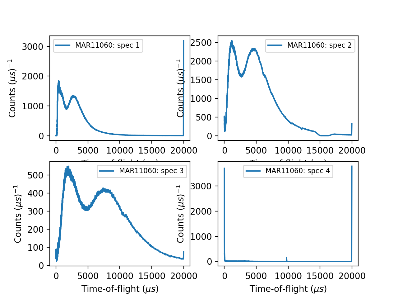 axes[0][0].set_xlabel('Time-of-flight ($\\mu s$)')