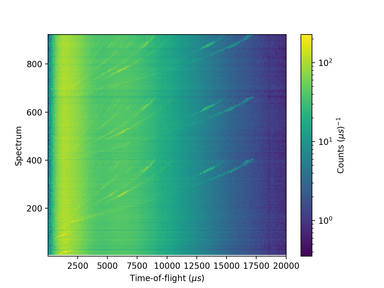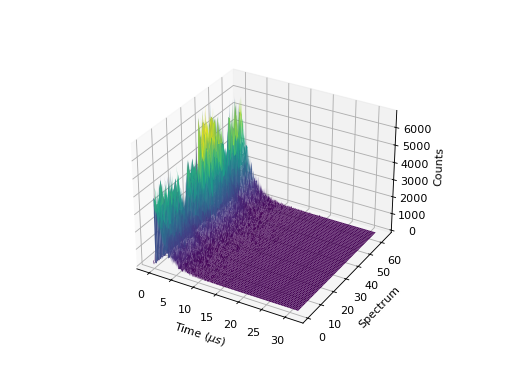 Right clicking on a row or a column allows a plot of that spectrum or time bin, which can also be achieved in Python using the plotSpectrum() or plotBin() functions, e.g.