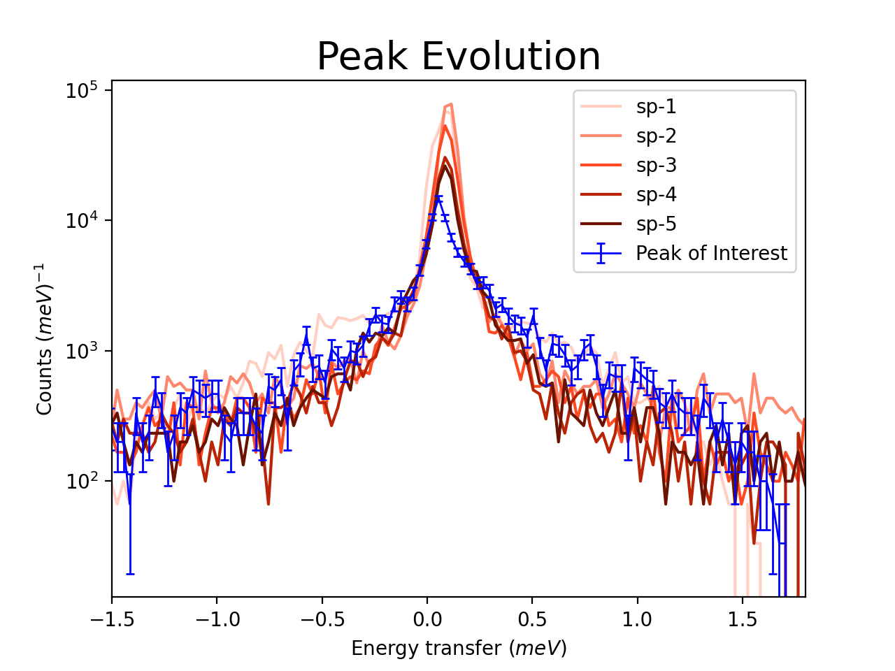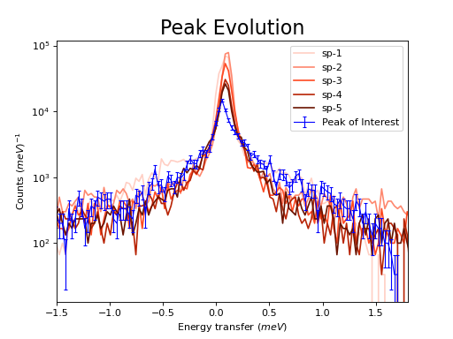 axes.errorbar(run, specNum=9, capsize=2.0, color='blue', label='Peak of Interest', linewidth=1.0)