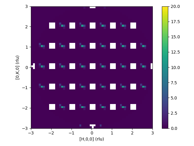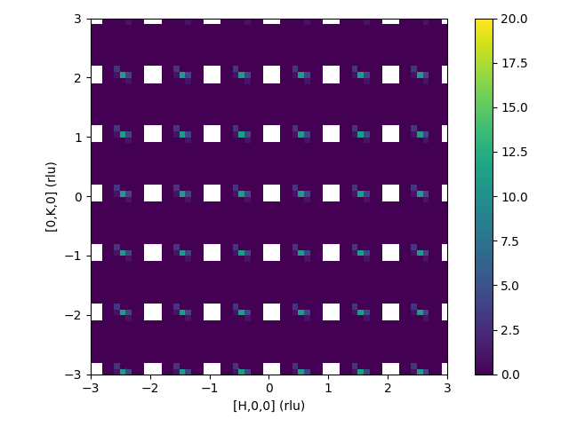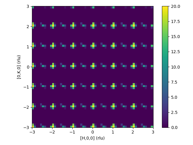 The input workspace must be a MDHistoWorkspace with dimensions ‘[H,0,0]’, ‘[0,K,0]’ and ‘[0,0,L]’, The dimensions must be centered on zero.