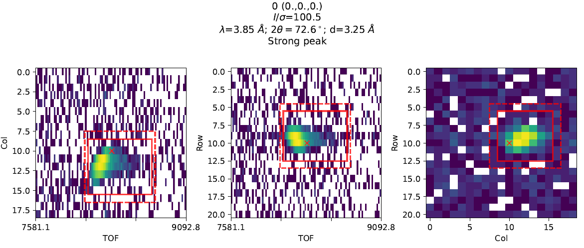 2. The shoebox dimensions of weak peaks can be obtained from nearby stronger peaks with scaling of the TOF dimension to account for the instrument resolution.