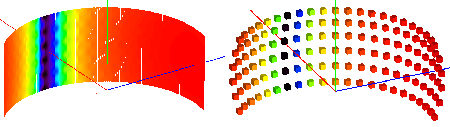 Absorption corrections for IN5 spectrometer interpolated from the sparse instrument shown on the right. The sparse instrument has 6 detector rows and 22 columns, a total of 132 detectors. IN5, on the other hand, has approximately 100000 detectors.¶