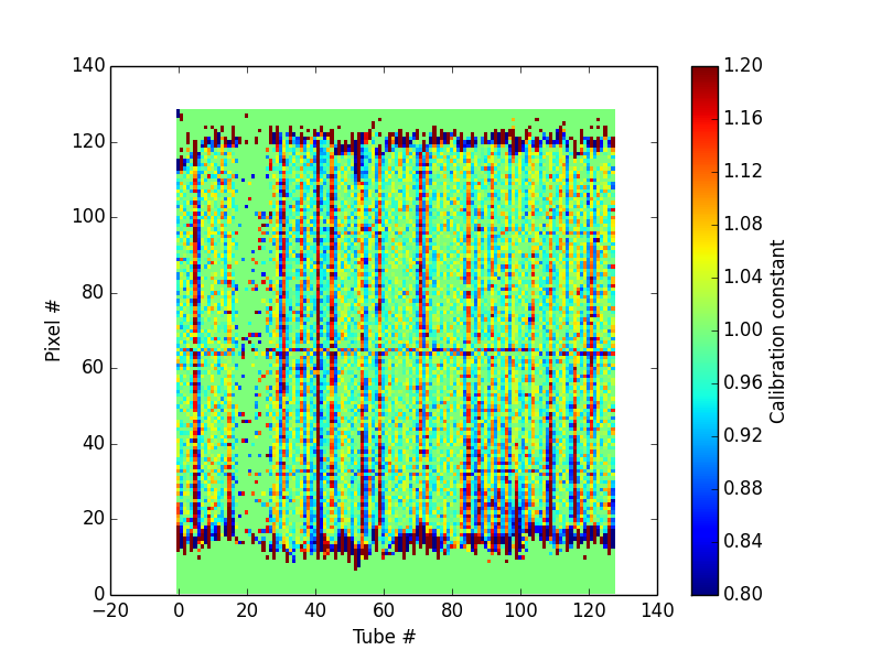 As mentioned, the calibration constants are computed pixel by pixel; no grouping of pixels inside the tubes is done.