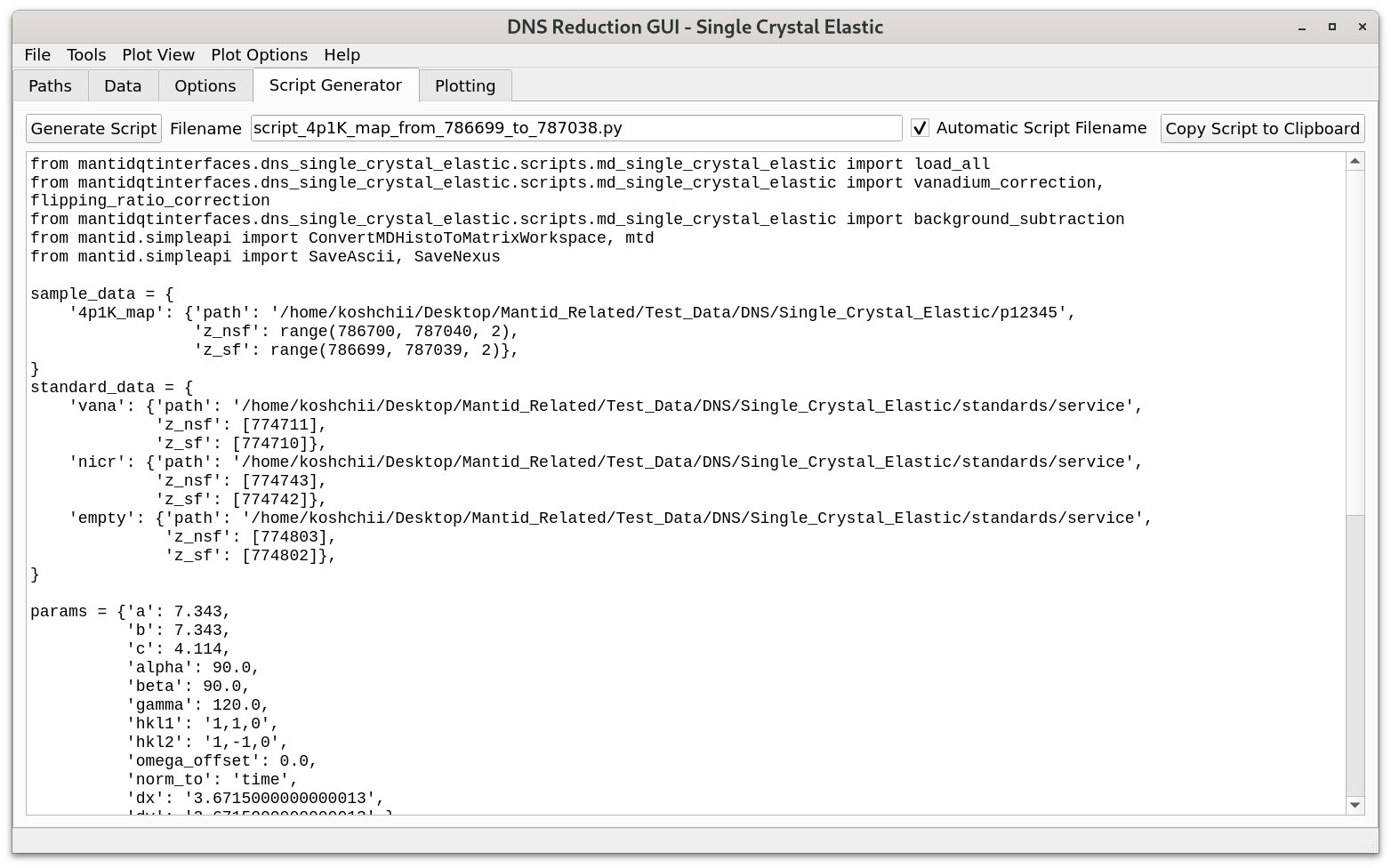 DNS Single Crystal Elastic - Script Generator Tab¶