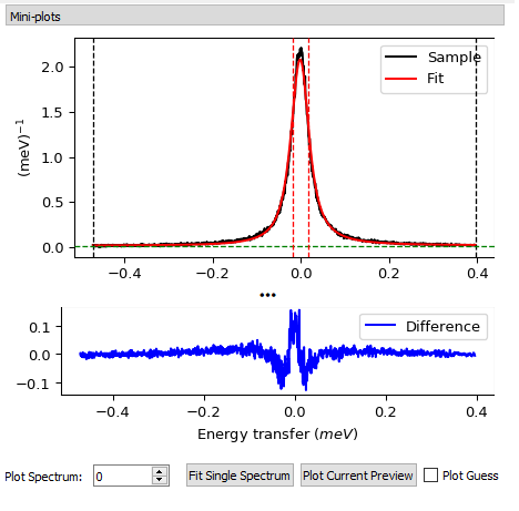 ‘Plot Current Preview’ can be used to plot the sample, fit, and difference curves of the selected spectrum in a separate plotting window.