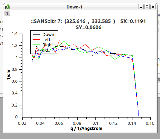Under the ‘Analysis Details’ tab, limit the Qx range to a maximum of about 0.15 /Ang and increase the Q binning to improve the data quality, say 12% log bins. It is also a good idea to push out the minimum Q. At 4m, say, from 0.0035 to 0.01 /Angstron, for example.