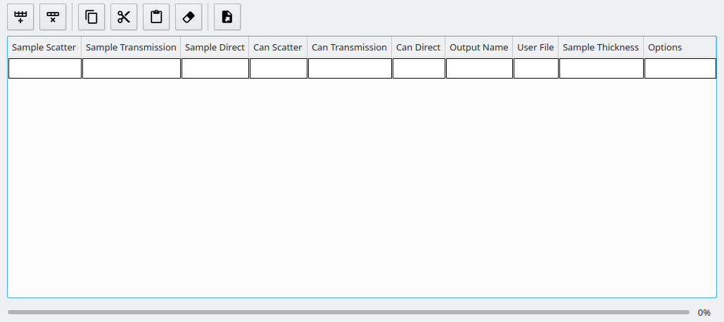 The Runs tab is where the majority of processing takes place. You can select your user file, batch file or manually enter data sets for reduction in the data table.