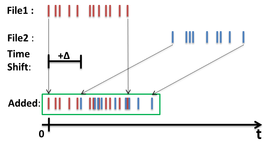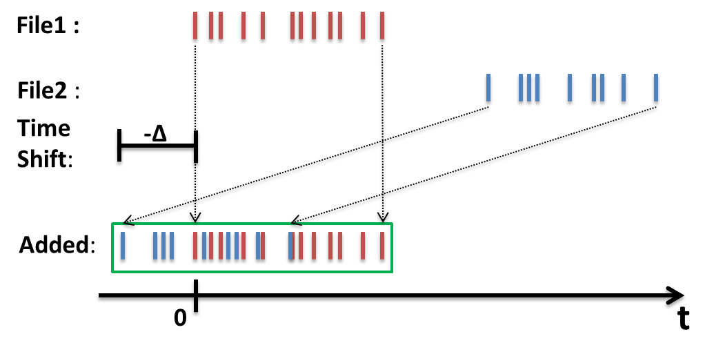 Additional time shifts are specified as a comma separated list of numbers where each shift is the time to shift by in seconds. The list should contain exactly N-1 entries where N is the number of runs to be summed.