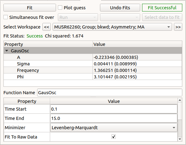 Fitting type Allows you to choose between doing a normal fit or a TF Asymmetry fit. See Calculate Muon Asymmetry for more information about TF Asymmetry mode.