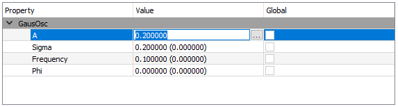 Value This lists the initial guesses for variables within fitting functions. Variables can be fixed for a given fit from the edit parameter values dialog box (click the ellipsis to the right of the value box).