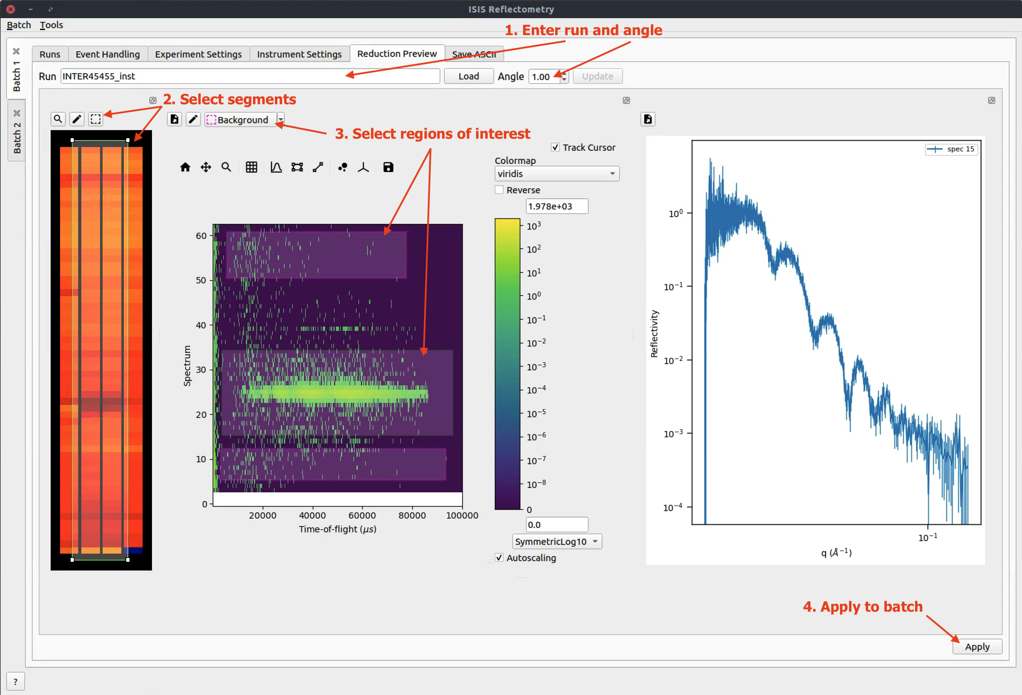 Batch tabs on the left contain all of the reduction settings for a particular batch of runs¶