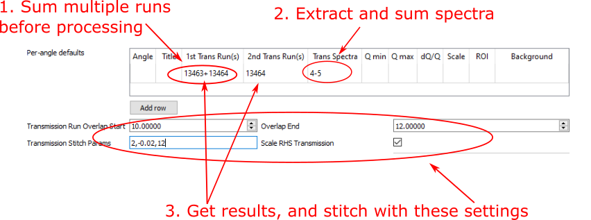 and separate spectra, if required, can be specified for the transmission runs -