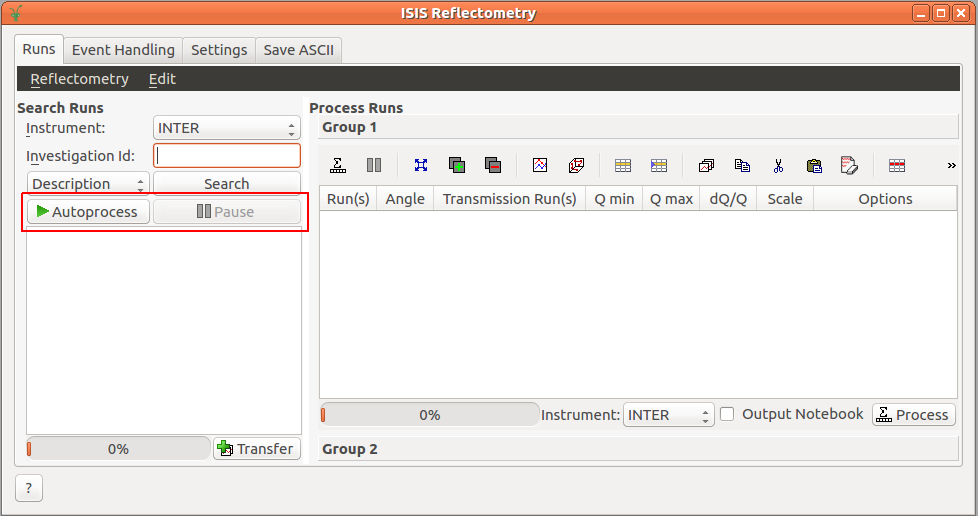 Autoprocessto process all of the runs for an investigation and to start polling for new runs. Whenever new runs are found, they will automatically be added to the table and processed.Live data monitoring has been added to the interface. This will periodically load live data from the instrument and reduce it with