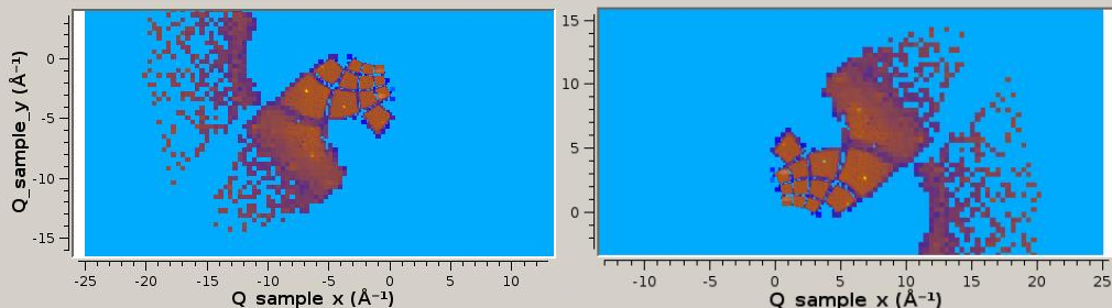 Screenshot of slice viewer displaying the same data in inelastic (left) and crystallographic conventions (right)¶