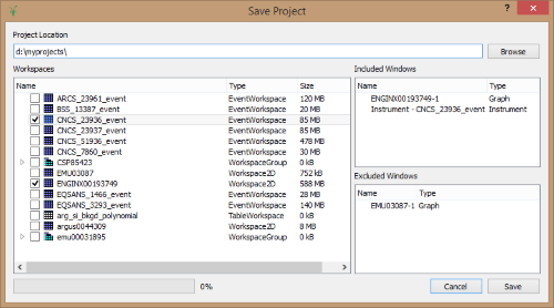 We have added a new dialog when saving a project that allows you to select which workspaces you want to save, and will tell you which graph windows will be included or excluded based on your selections.
