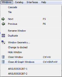 If you have lots of windows that you want to close, there is now an option to close all of the windows of a certain type in one go in the window menu. The type of window is based on the selected window, so to close all graph windows, just click on a graph window and go to