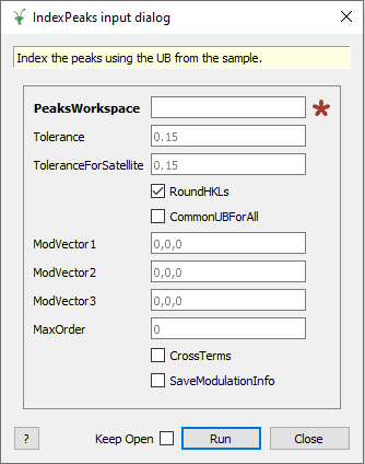 * IndexPeaks now has options to enter modulation vectors and additional information required for satellite peak indexing. As a result
