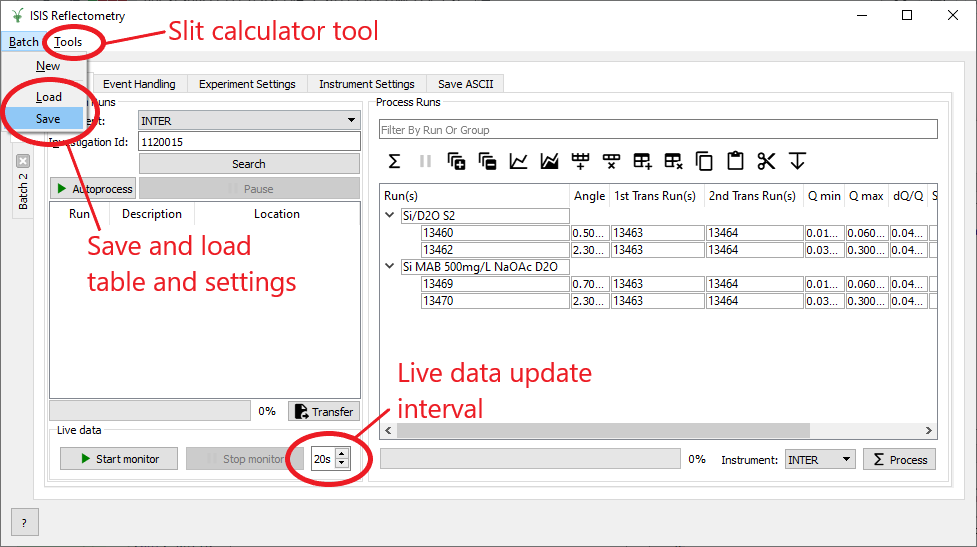 Batch Save/Load: you can now save and re-load a full “batch reduction”. This includes the runs table and all of the reduction settings for a particular Batch tab.