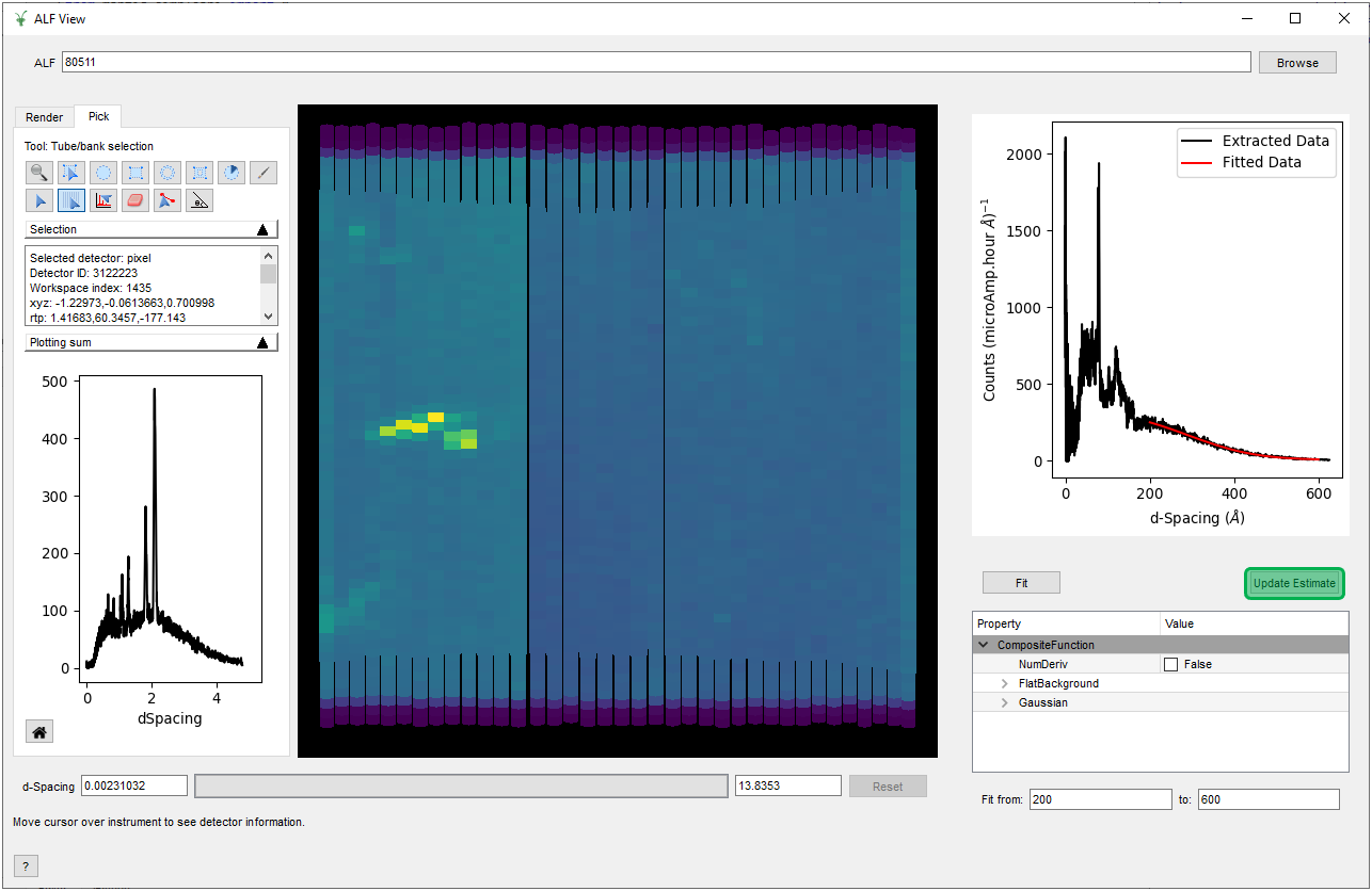An estimation of fit parameters is performed when extracting a single tube for the first time. The estimate can subsequently be updated using the