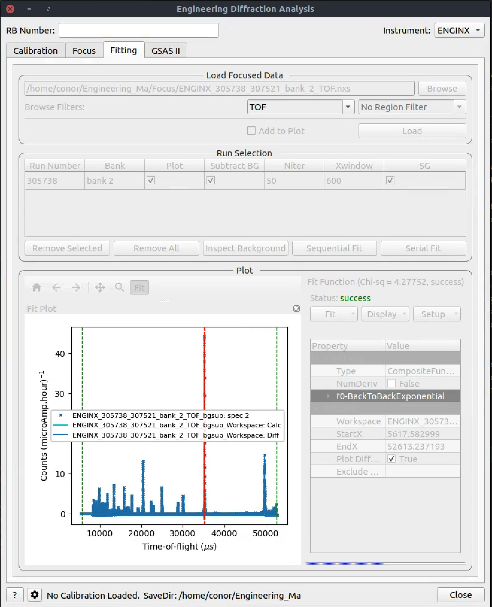 FitPropertyBrowseron the Engineering Diffraction interfaceFittingtab. This will display when the fit is in progress and whether the most recent fit was successful or a failure.