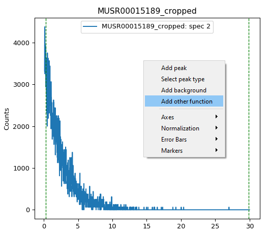 5. Notice how the ExpDecay function has appeared in the Functions list on the Fit Property Browser, and there are pre-set Settings below.