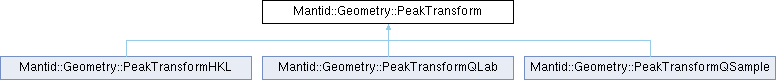 Implemented in Mantid::Geometry::PeakTransformHKL, Mantid::Geometry::PeakTransformQLab, and Mantid::Geometry::PeakTransformQSample.