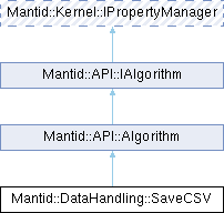 SaveCSV is an algorithm and as such inherits from the Algorithm class, via DataHandlingCommand, and overrides the init() & exec() methods.