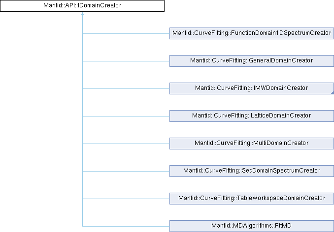 Implemented in Mantid::MDAlgorithms::FitMD, Mantid::CurveFitting::MultiDomainCreator, Mantid::CurveFitting::LatticeDomainCreator, Mantid::CurveFitting::FitMW, Mantid::CurveFitting::FunctionDomain1DSpectrumCreator, Mantid::CurveFitting::GeneralDomainCreator, Mantid::CurveFitting::HistogramDomainCreator, Mantid::CurveFitting::SeqDomainSpectrumCreator, and Mantid::CurveFitting::TableWorkspaceDomainCreator.