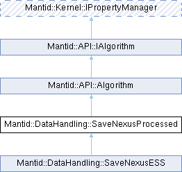 Saves a workspace as a Nexus Processed entry in a Nexus file. SaveNexusProcessed is an algorithm and as such inherits from the Algorithm class, via DataHandlingCommand, and overrides the init() & exec() methods.