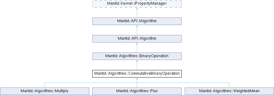 In Commutative operations it does not matter if the order of the two input workspaces is reversed. e.g. a+b is the same as b+a, and a*b is the same as b*a. It inherits from the BinaryOperation class.