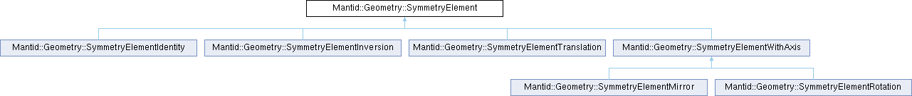 The base class itself can not be used, it only defines a (very small) interface that currently only contains the Hermann-Mauguin symbol of the element, as that is the one common factor for all symmetry elements. There are however classes for identity, translation, inversion, rotation and mirror.