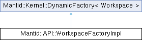 Public Types inherited from Mantid::Kernel::DynamicFactory< Workspace > | |